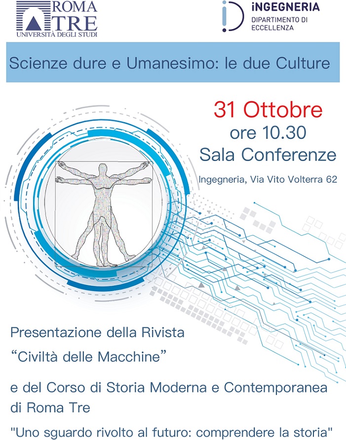 Durante l’evento sarà presentata la Rivista “Civiltà delle Macchine” ed il Corso di Storia Moderna e Contemporanea di Roma Tre “Uno sguardo rivolto al futuro: comprendere la storia”, dedicato ai dipartimenti scientifici, ispirato all’appello “La Storia è un Bene Comune”.